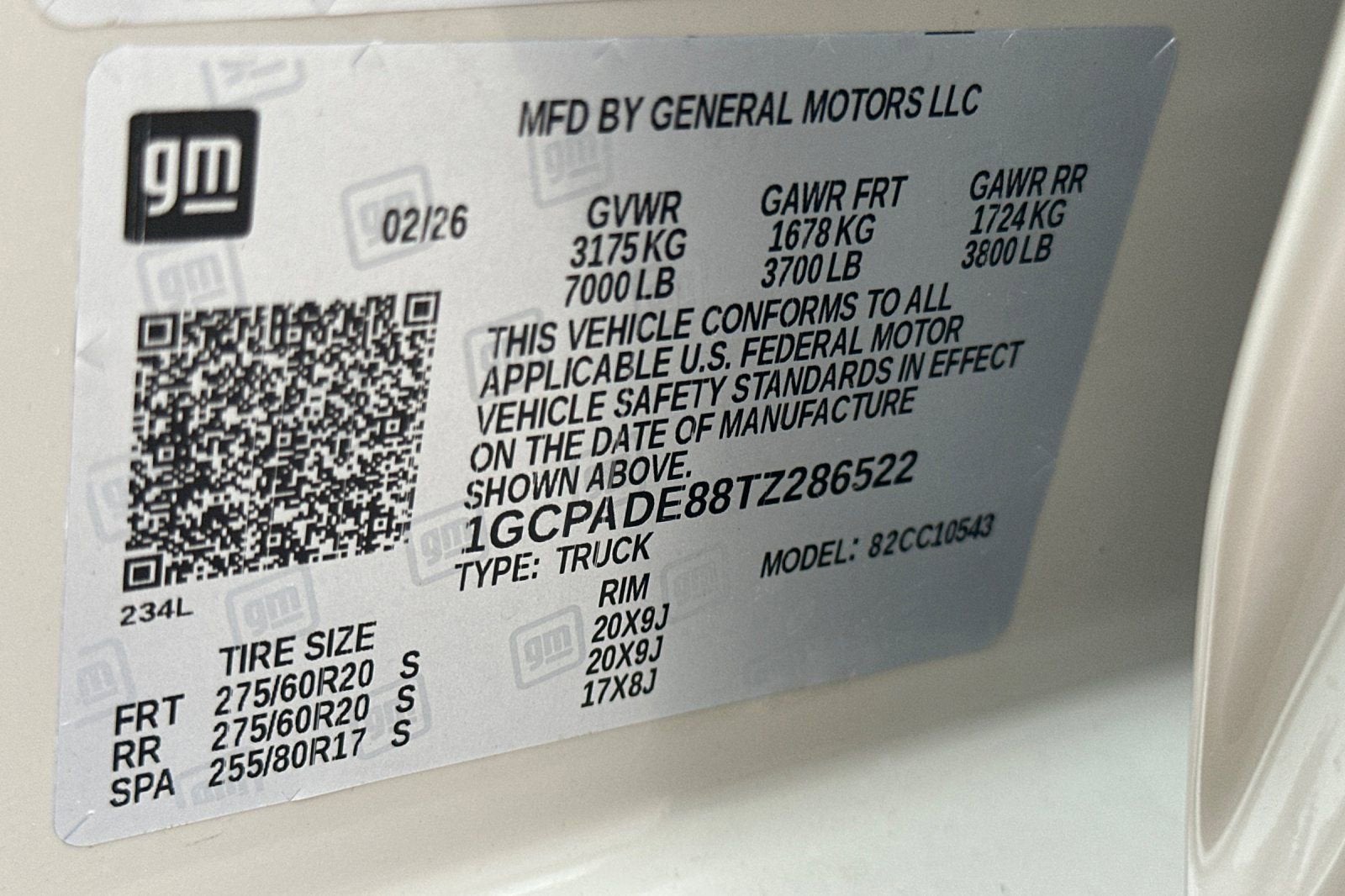 VIN: 1GCPADE88TZ286522