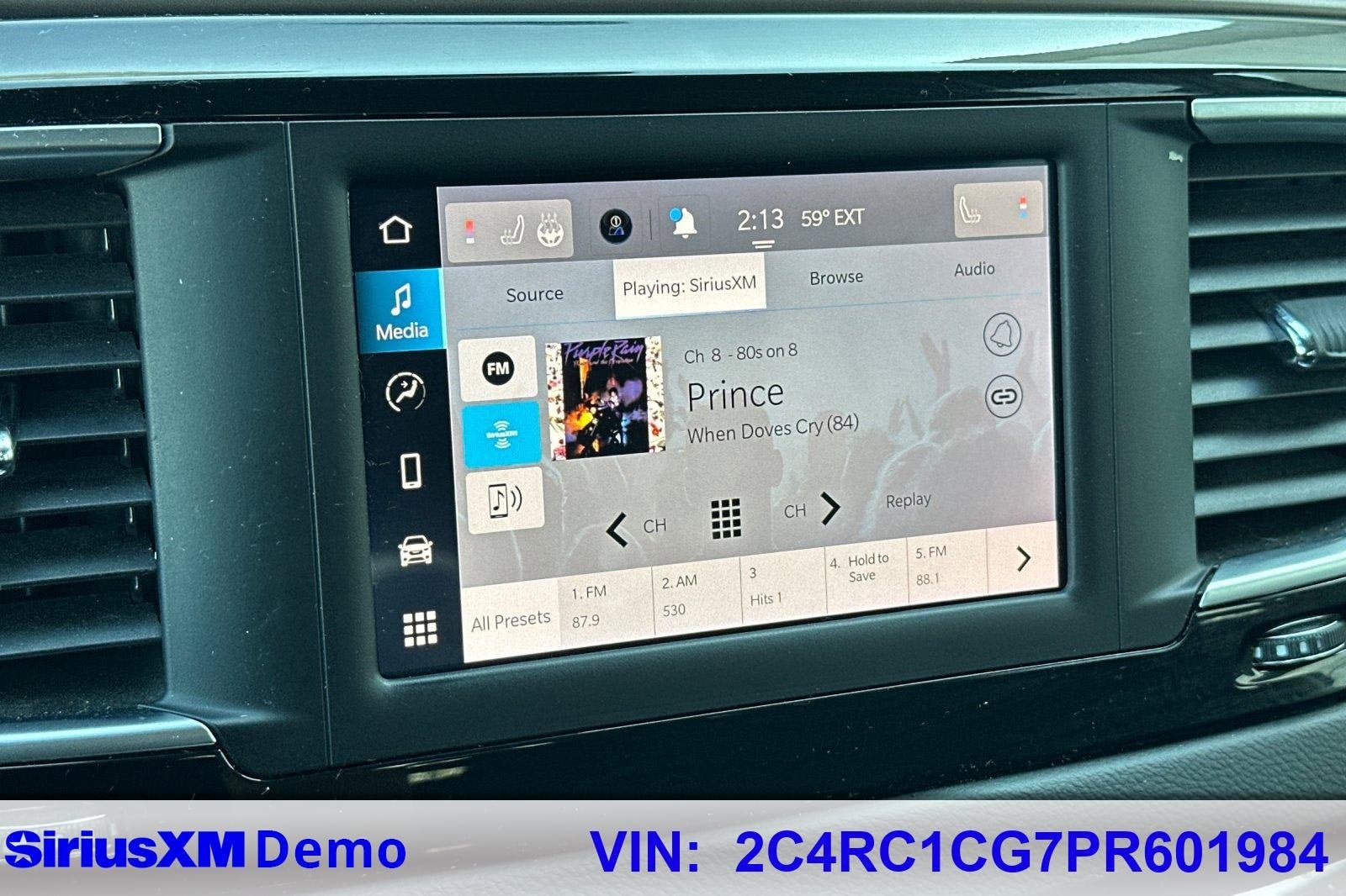 17 x 7 Aluminum Wheels, 3.25 Axle Ratio, 3rd row seats: split-bench, 4-Wheel Disc Brakes, 6 Speakers, ABS brakes, Air Conditioning, Alloy wheels, AM/FM radio: SiriusXM, Apple CarPlay, Apple CarPlay/Android Auto, Automatic temperature control, Black Seats, Brake assist, Bumpers: body-color, Cloth Bucket Seats, Compass, Delay-off headlights, Driver door bin, Driver vanity mirror, Driver's Seat Mounted Armrest, Dual front impact airbags, Dual front side impact airbags, Electronic Stability Control, Exterior Mirrors w/Heating Element, Four wheel independent suspension, Front anti-roll bar, Front Bucket Seats, Front dual zone A/C, Front reading lights, Fully automatic headlights, Google Android Auto, GPS Antenna Input, Heated door mirrors, Heated front seats, Heated steering wheel, Illuminated entry, Knee airbag, Low tire pressure warning, Occupant sensing airbag, Outside temperature display, Overhead airbag, Overhead console, Panic alarm, ParkView Rear Back-Up Camera, Passenger door bin, Passenger seat mounted armrest, Passenger vanity mirror, Power door mirrors, Power driver seat, Power Liftgate, Power steering, Power windows, Quick Order Package 27E, Radio data system, Radio: Uconnect 5 w/7 Display, Rear air conditioning, Rear window defroster, Rear window wiper, Reclining 3rd row seat, Remote keyless entry, Security system, Speed control, Split folding rear seat, Spoiler, Steering wheel mounted audio controls, Tachometer, Telescoping steering wheel, Tilt steering wheel, Touring Suspension, Traction control, Trip computer, USB Host Flip, Variably intermittent wipers, Voltmeter.